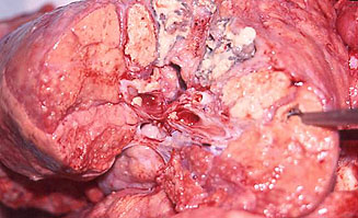 necrosis en ganglio tráqueo-bronquial. Adenopatía